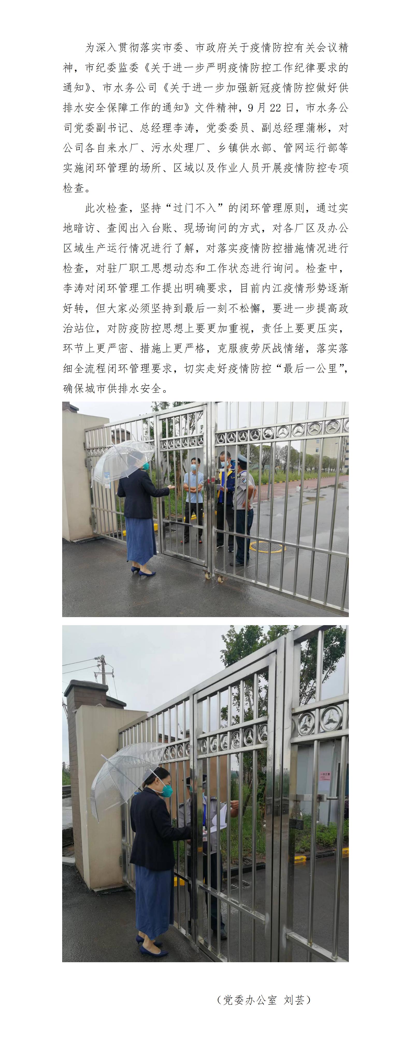 市水務(wù)公司開展閉環(huán)管理專項檢查 筑牢疫情防控堅實防線