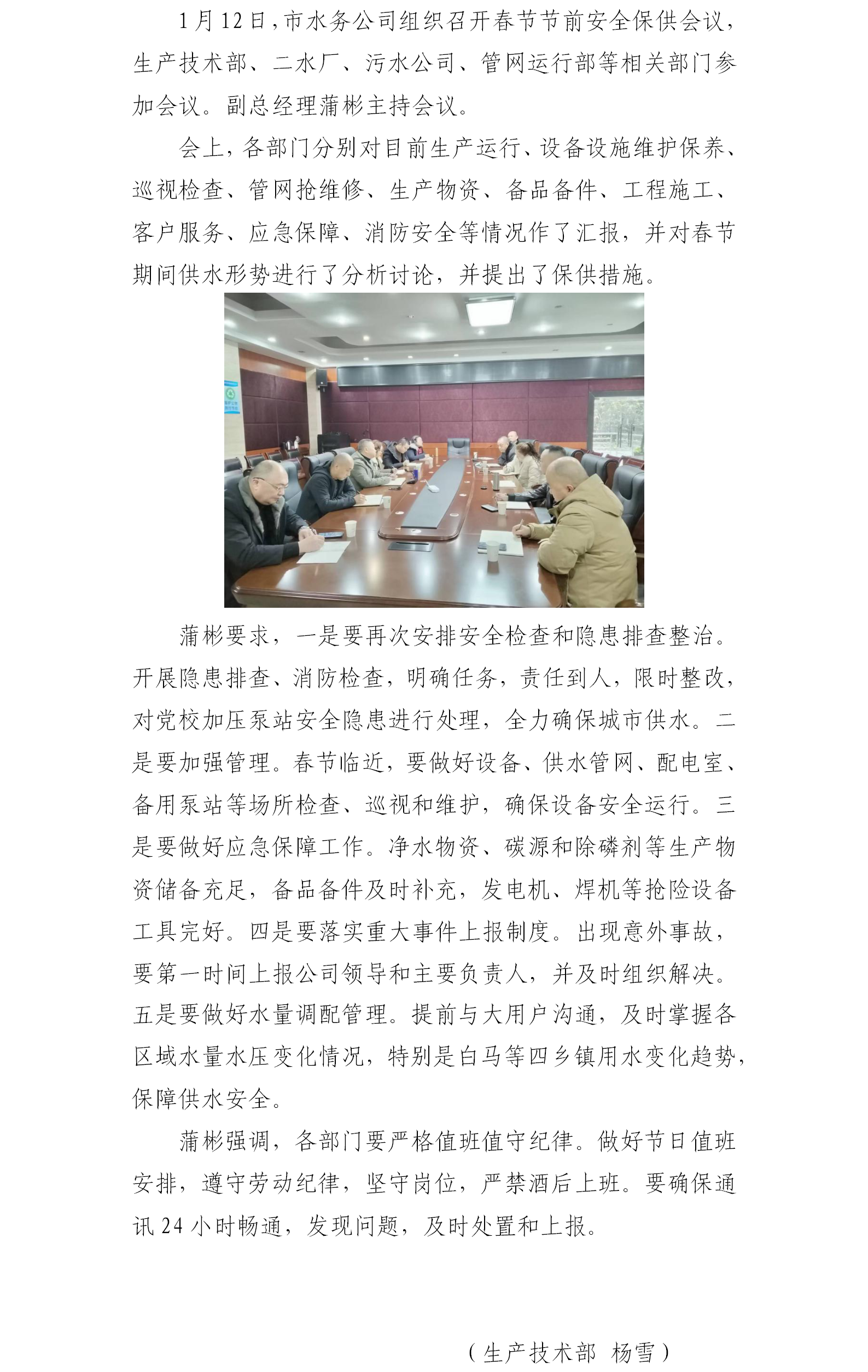 市水務公司召開春節(jié)前保障供排水安全生產(chǎn)工作會議
