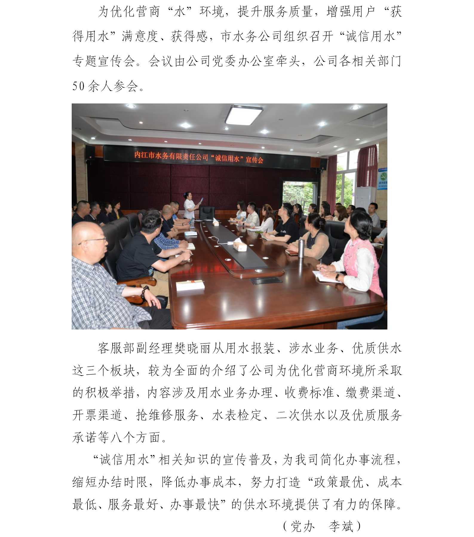 公司召開“誠(chéng)信用水”宣傳會(huì)