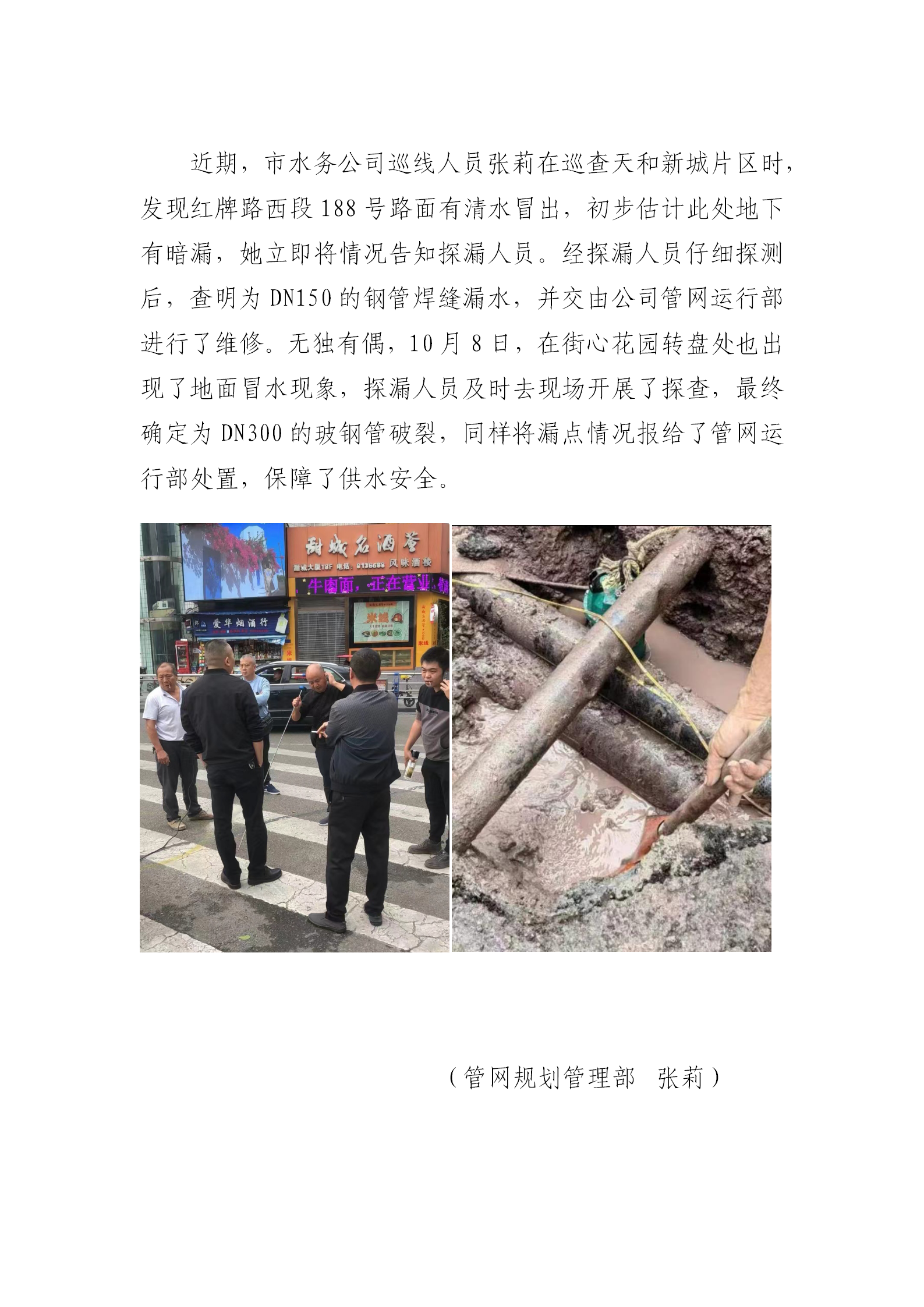 路面冒水存隱患 及時(shí)發(fā)現(xiàn)保安全