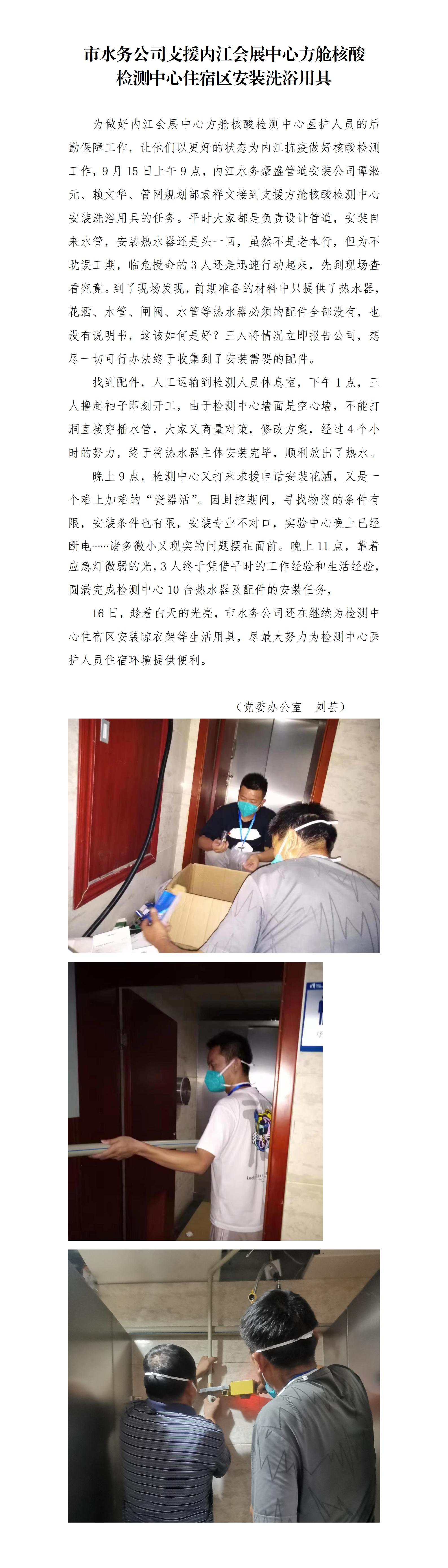 市水務公司支援內(nèi)江會展中心方艙核酸 檢測中心住宿區(qū)安裝洗浴用具