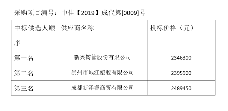 內(nèi)江市水務有限責任公司球墨鑄鐵管管材及管件采購項目評標結果公示