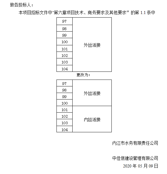 內(nèi)江市水務(wù)有限責(zé)任公司PPR給水管及管件采購項(xiàng)目更正公告
