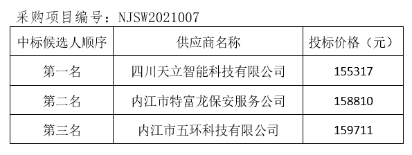 內(nèi)江市污水處理有限責(zé)任公司監(jiān)控系統(tǒng)升級(jí)改造項(xiàng)目評(píng)標(biāo)結(jié)果公示