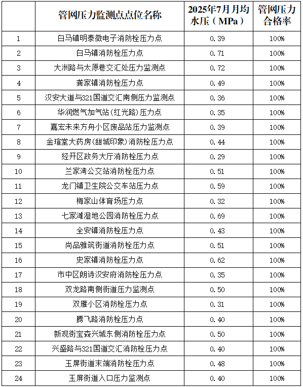 內(nèi)江市水務(wù)有限責(zé)任公司2025年7月管網(wǎng)壓力月報