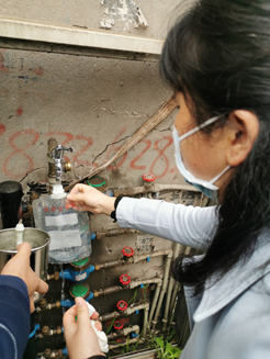 因受疫情影響,學校供水管網及相關設備長時間處于未使用狀態(tài),極易出現(xiàn)水質問題。為確保校園用水安全,4月7日至8日,水質檢測中心對城區(qū)及鄉(xiāng)鎮(zhèn)的23個中小學校供水進行取樣檢測,并將數(shù)據反饋給生產技術部,為水廠制水適時調整消毒劑投加量提供科學指導。
