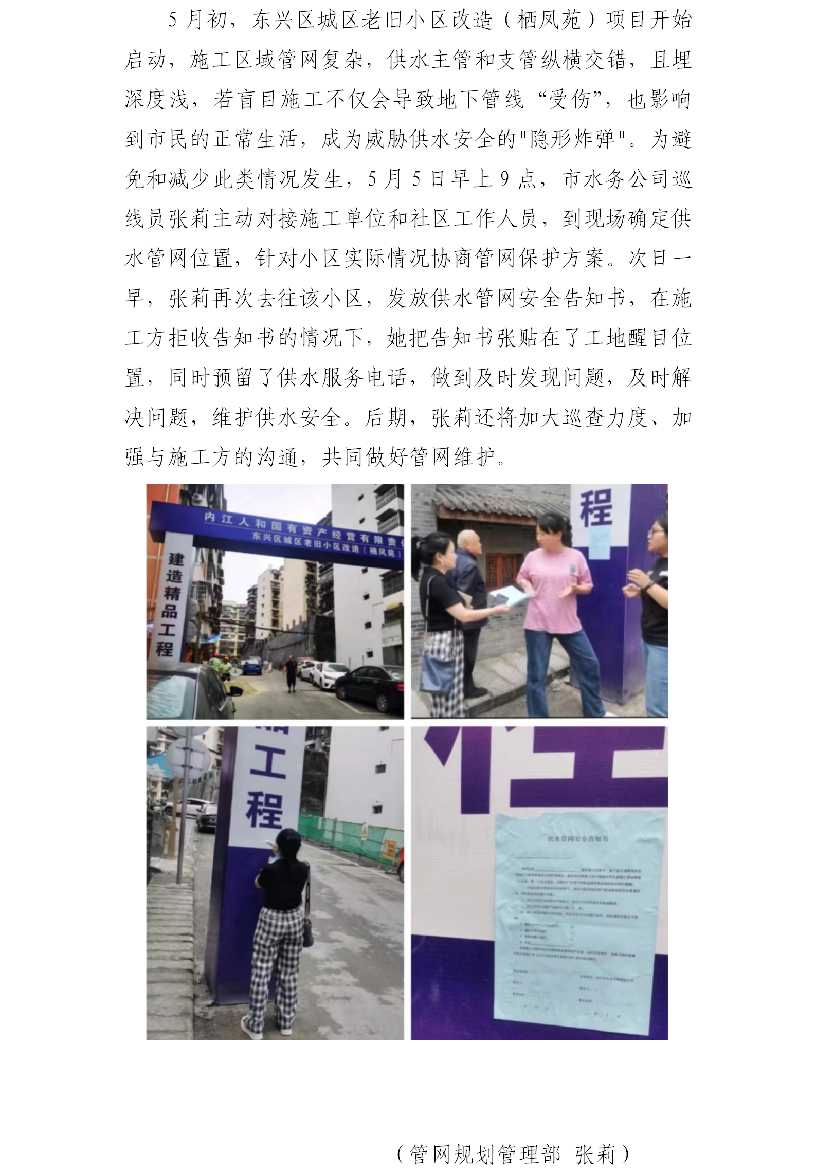 張貼安全告知書 共同做好管網(wǎng)維護
