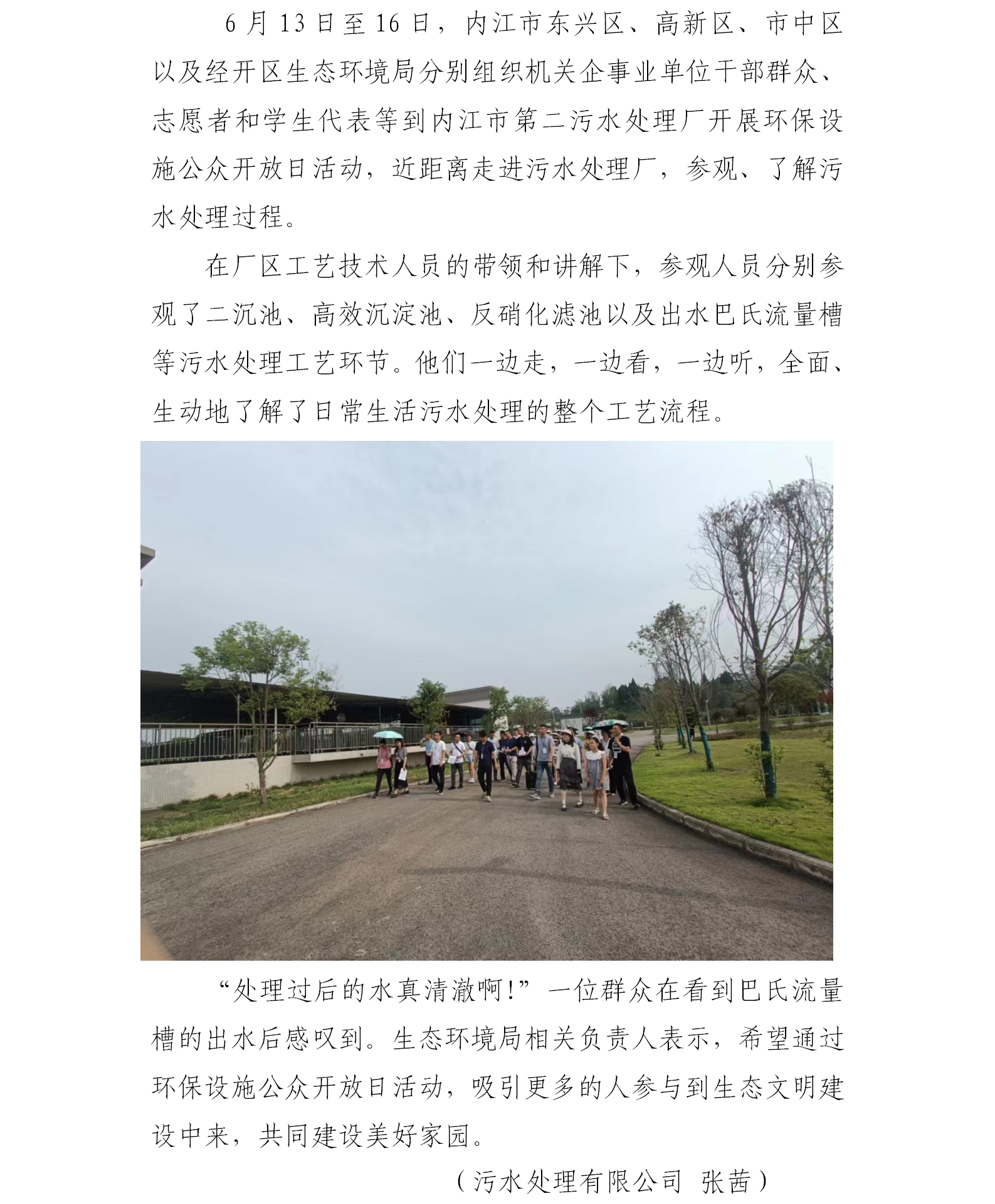 內(nèi)江市多區(qū)生態(tài)環(huán)境局組織到第二污水處理廠開(kāi)展環(huán)保設(shè)施公眾開(kāi)放日活動(dòng)
