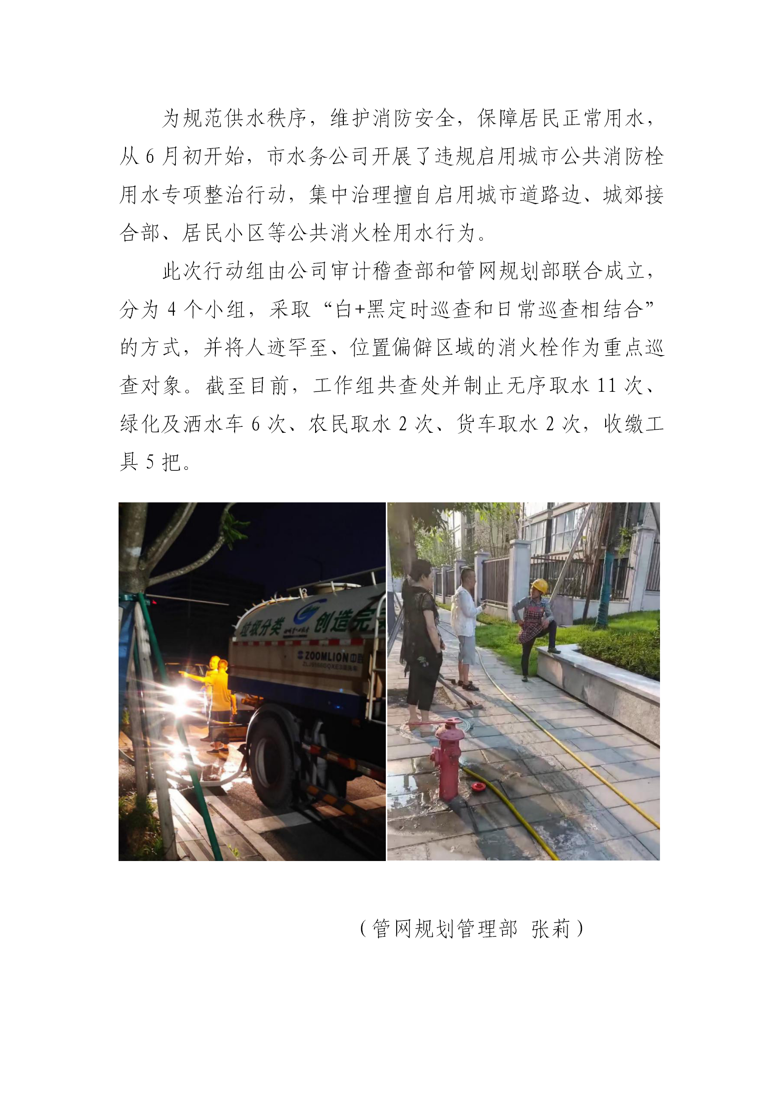 水務公司開展消火栓無序取水整治工作