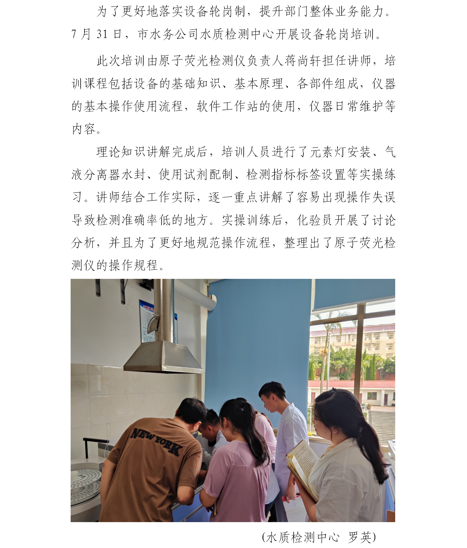 水質(zhì)檢測中心開展設(shè)備輪崗培訓(xùn)