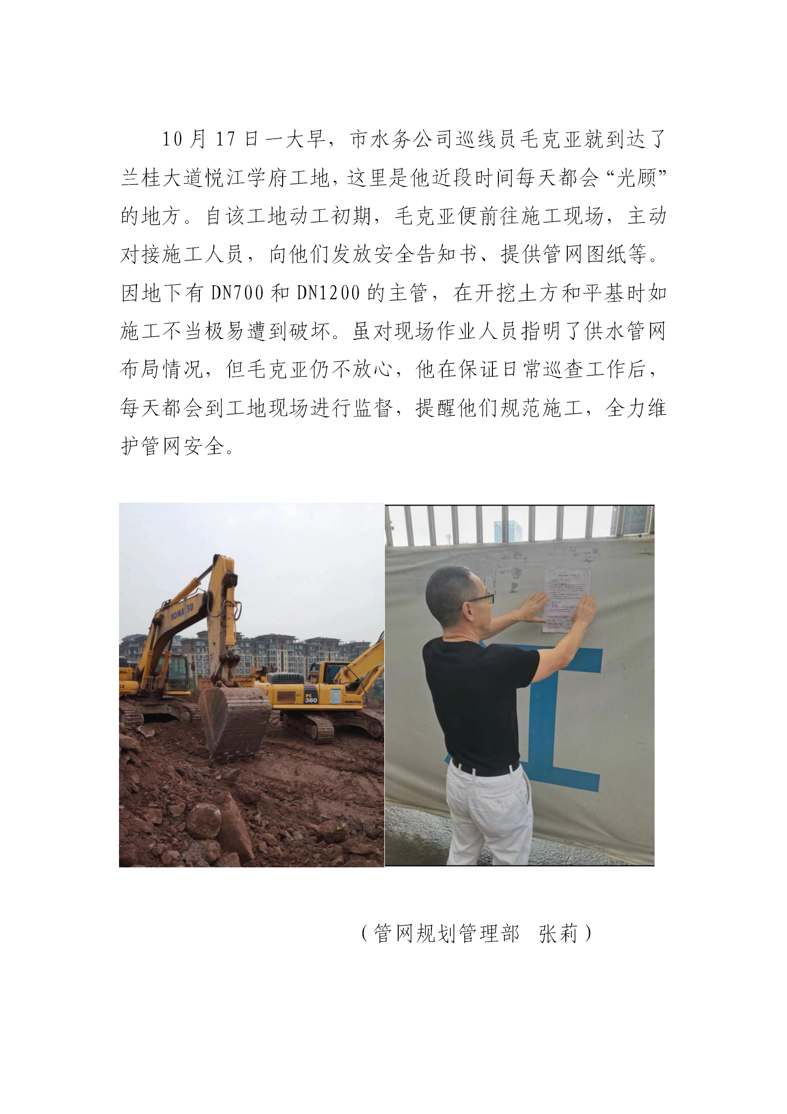 施工現(xiàn)場(chǎng)勤“光顧 管網(wǎng)安全我維護(hù)