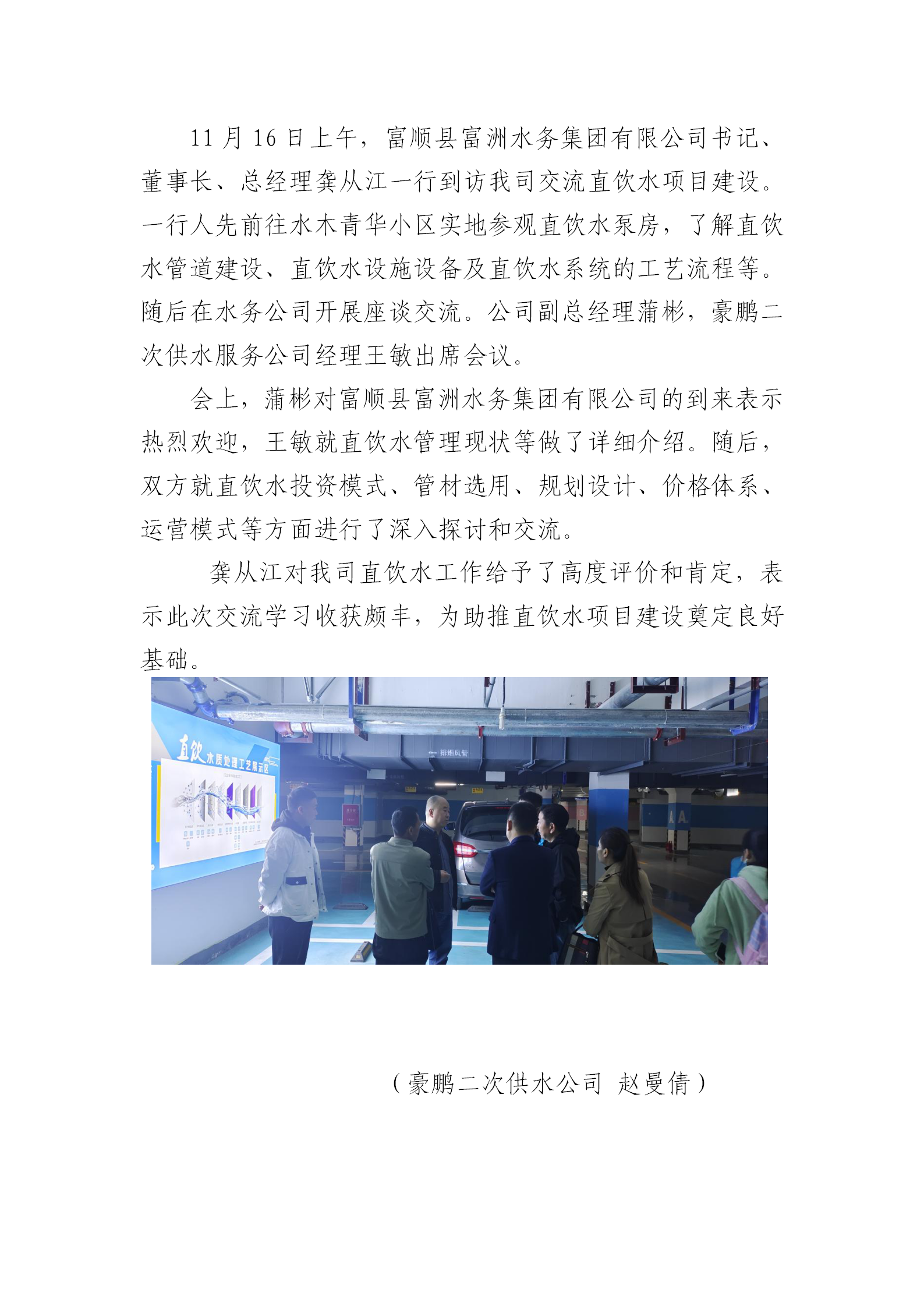 富順縣富洲水務(wù)集團有限公司到我司開展直飲水項目建設(shè)交流