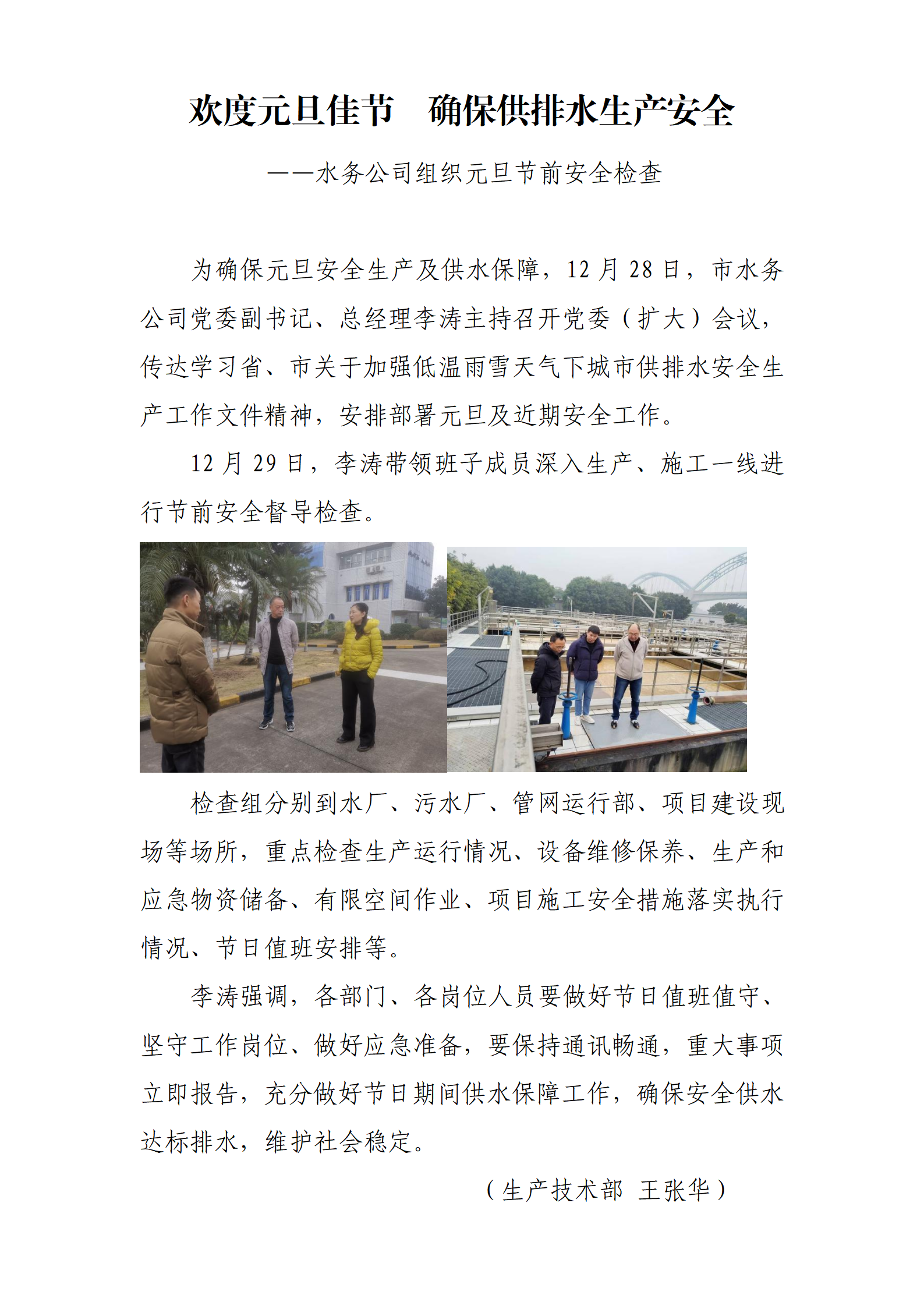 歡度元旦佳節(jié) 確保供排水生產(chǎn)安全