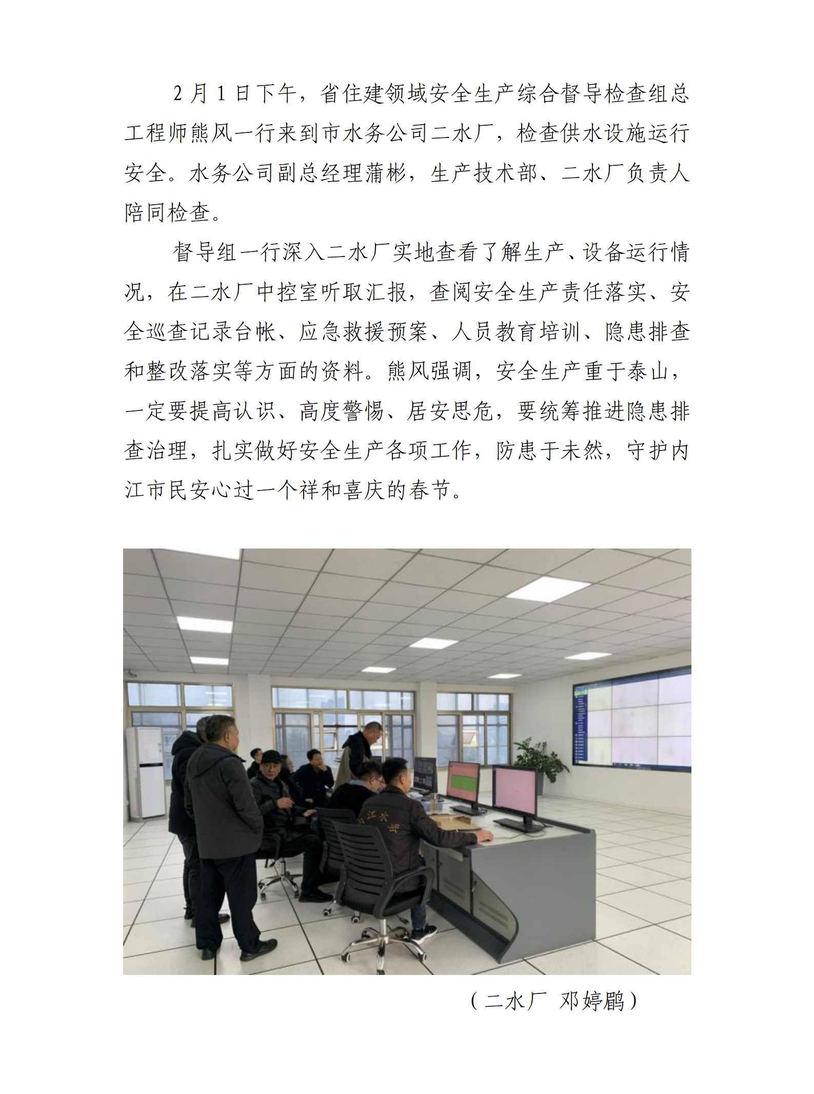 省住建安全生產(chǎn)督導組到二水廠進行安全生產(chǎn)檢查