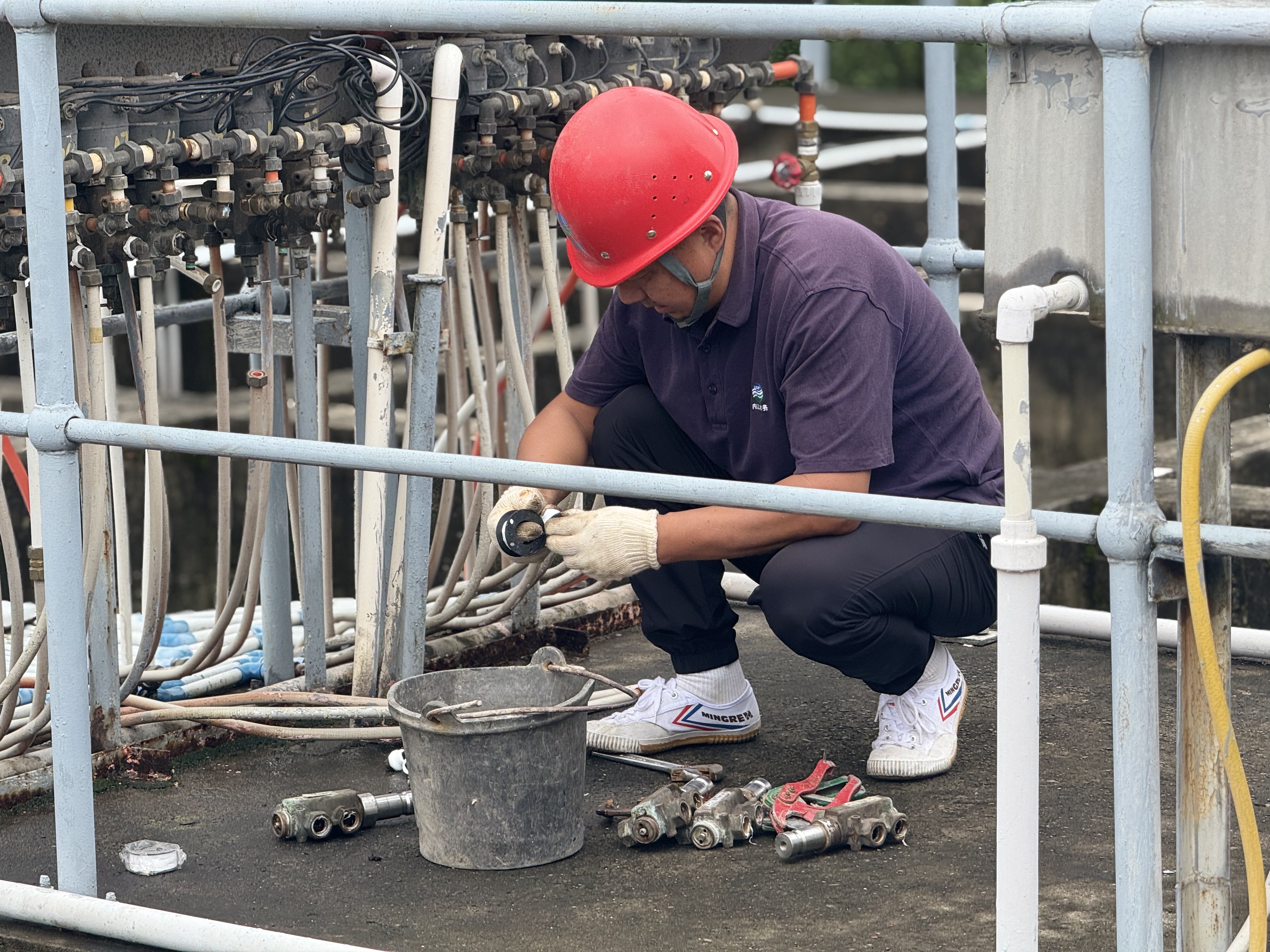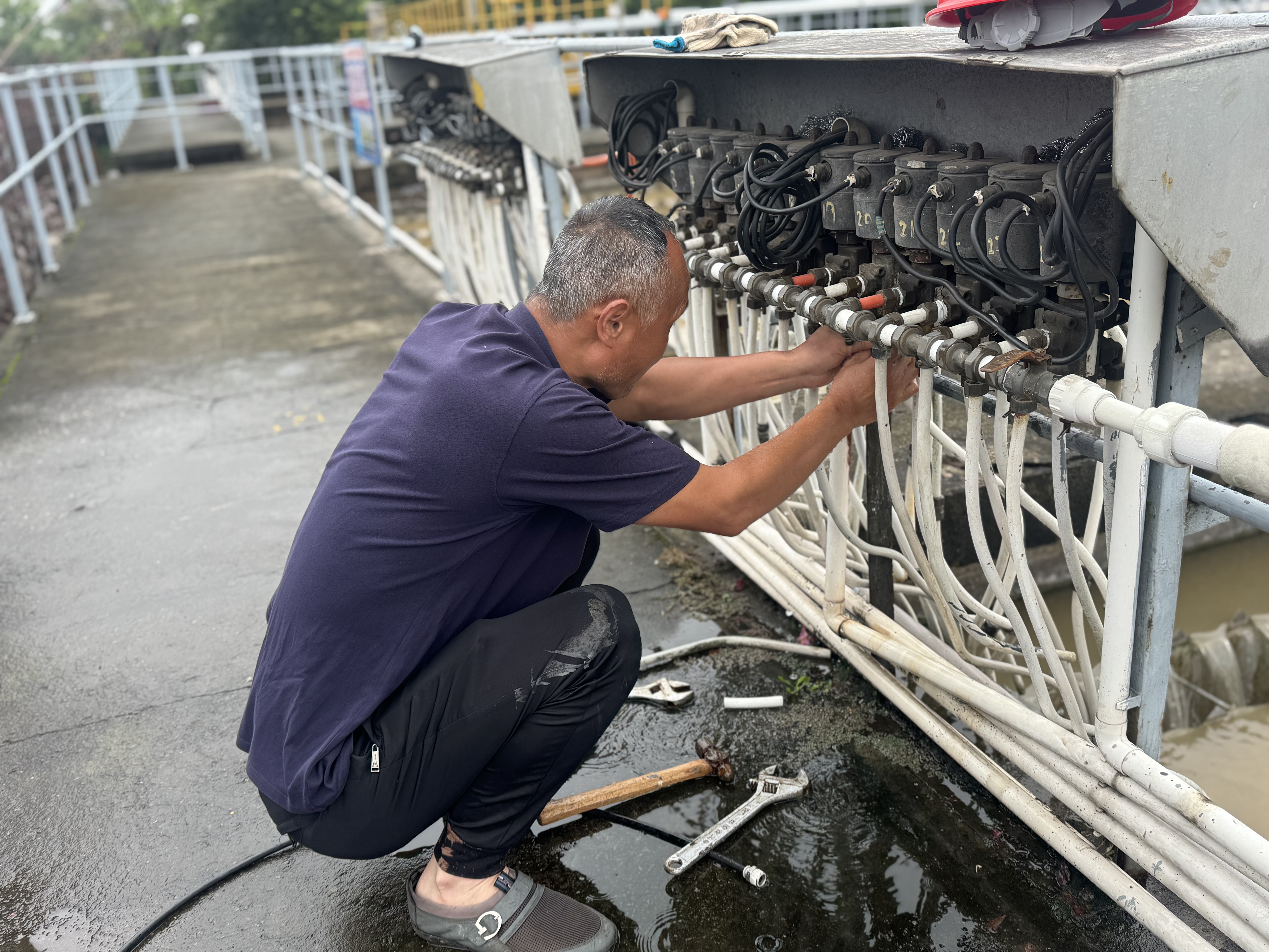 供水安全的責任重于泰山。7月8日清晨,剛剛完成三水廠二氧化氯投加設備維修的供水分公司維修組,聞令火速轉(zhuǎn)戰(zhàn)二水廠,投入到緊張的“戰(zhàn)斗”中:迅速展開拆解、診斷、更換、調(diào)試工作。經(jīng)驗豐富的維修師傅們動作嫻熟而精準,他們以專業(yè)的技術和頑強的作風,與時間賽跑,與故障較量,高效疏通了排泥系統(tǒng)的“堵點”,確保流進千家萬戶的每一滴自來水,都經(jīng)得起最嚴格的檢驗。