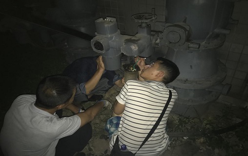 5月16日晚上19:43分,污水處理廠一期4號生化池進氣閥跳閘,檢修人員放棄自身休息時間,立即趕赴現(xiàn)場開展搶修。