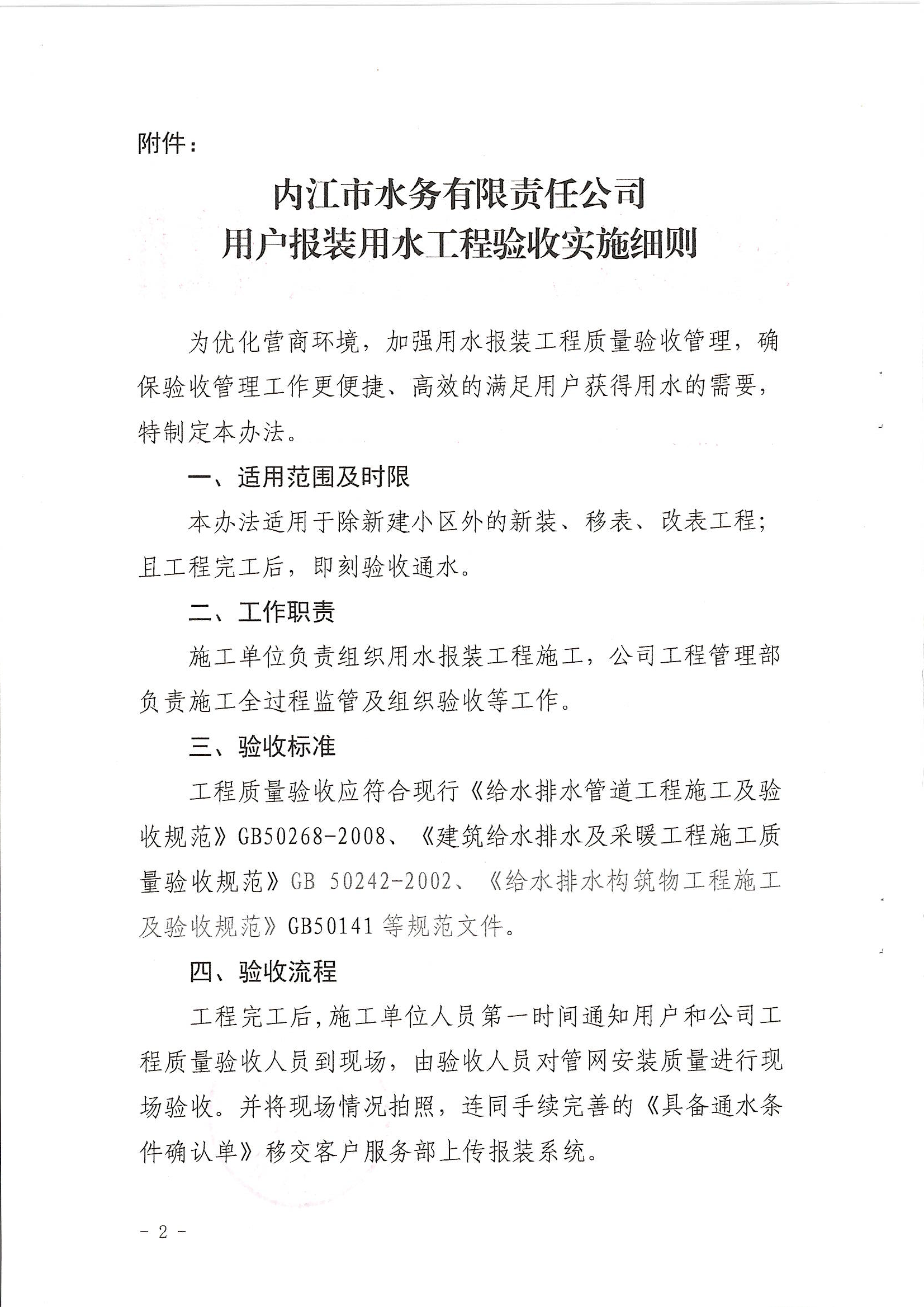內(nèi)江市水務(wù)有限責(zé)任公司用戶報(bào)裝用水工程驗(yàn)收實(shí)施細(xì)則