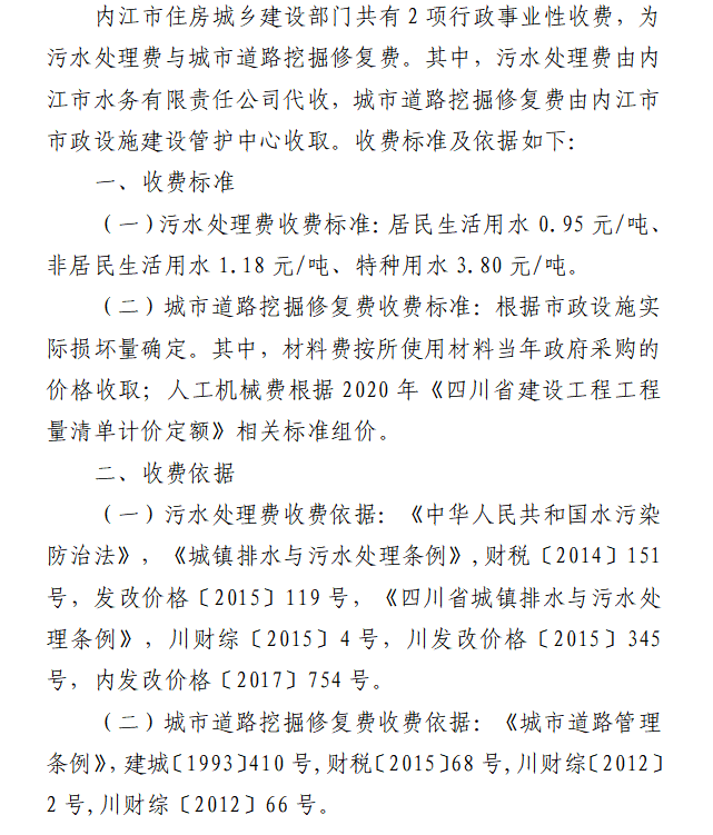 內(nèi)江市住房城鄉(xiāng)建設(shè)部門行政事業(yè)性收費說明